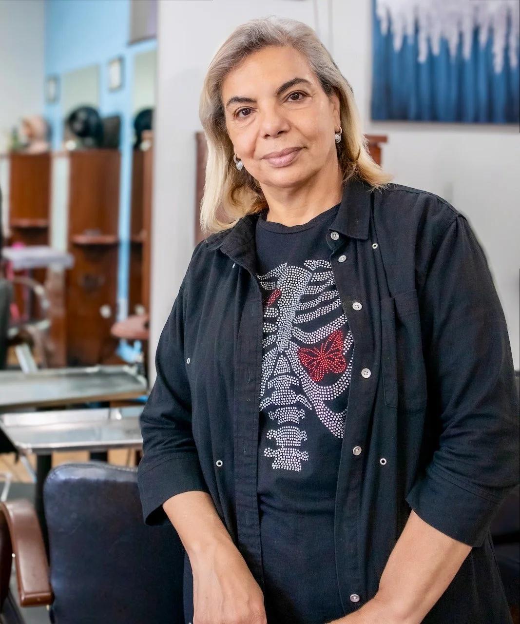 Leticia brings over 25 years of hairstyling expertise, blending her background in psychology with a passion for beauty to create personalized, relaxing experiences. Her specialties include precision haircuts for women and men, fades, color treatments, highlights, and Pure Brazilian smoothing. Leticia prides herself on attentive listening and exceptional client care.
